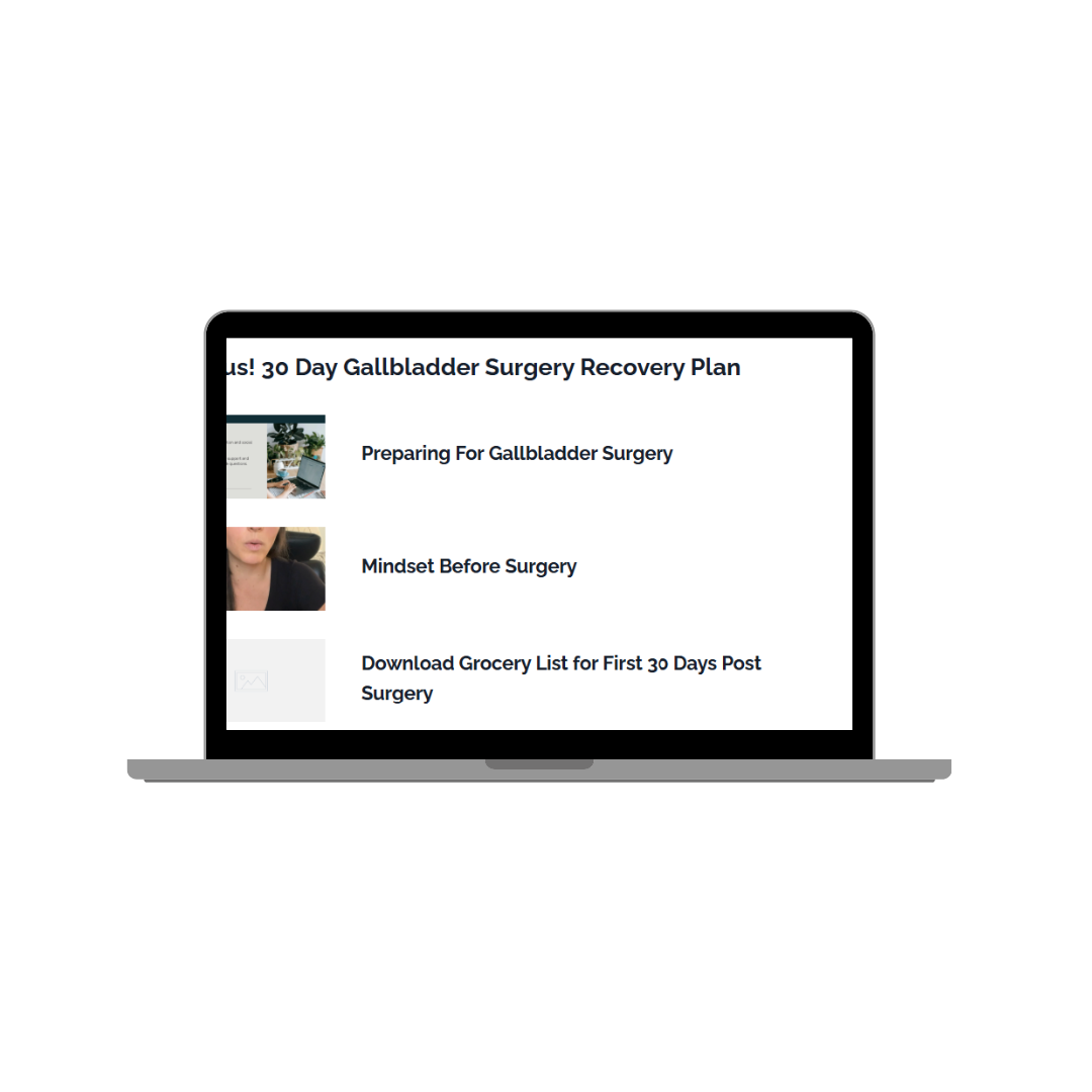 BONUS THREE:Â Access to my Signature 30 Day Gallbladder Surgery Recovery Plan