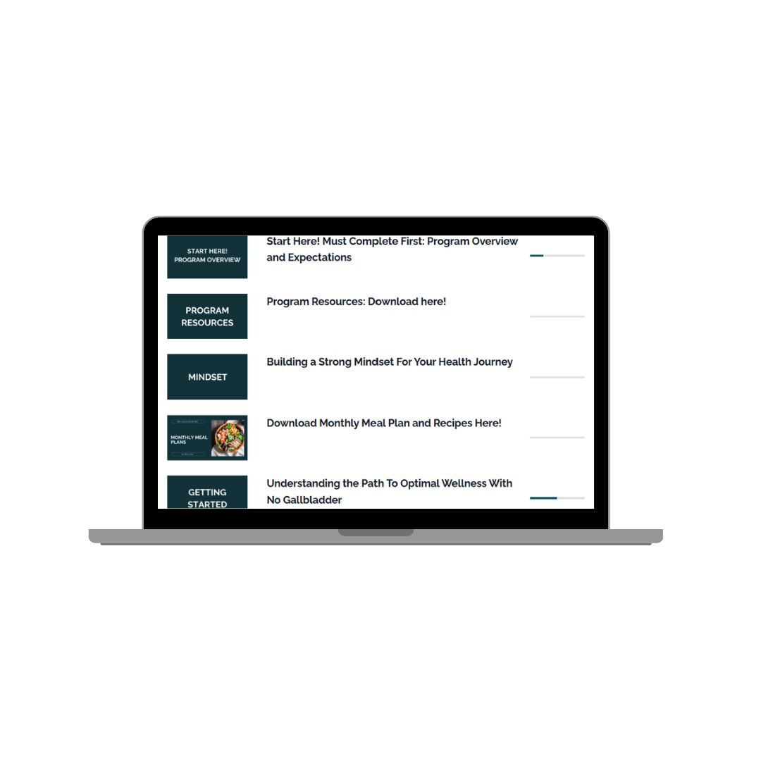 Your ultimate resource for learning how to thrive without a gallbladder. Whether you’ve recently had surgery or have been living without a gallbladder for years, this membership is designed to empower you with the tools, knowledge, and support to optimize your health and reclaim your vitality.